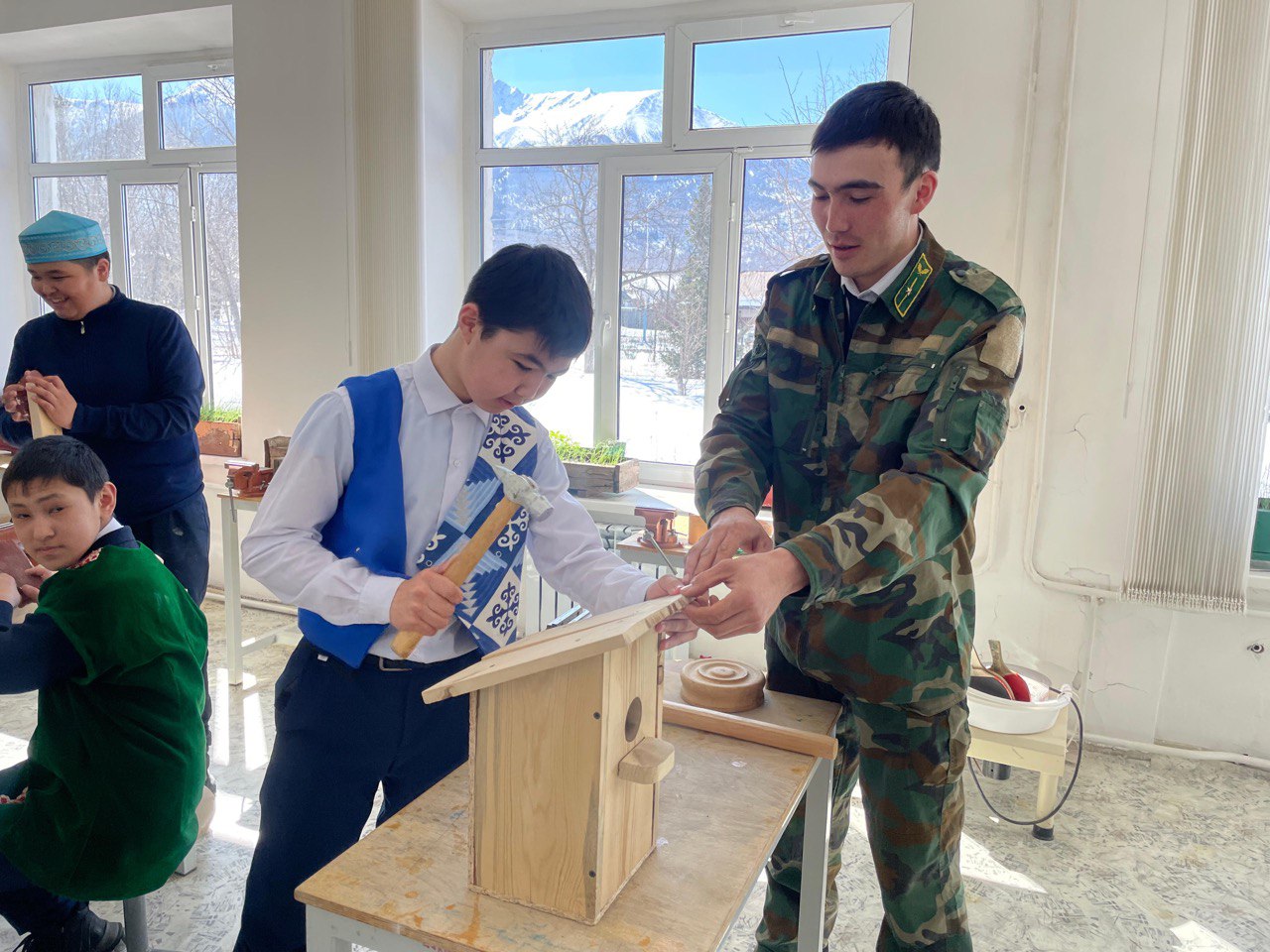 Работа кипит в школьных мастерских: под стук молотков и запах свежей древесины рождаются будущие птичьи домики. Инспекторы объясняют важные нюансы: